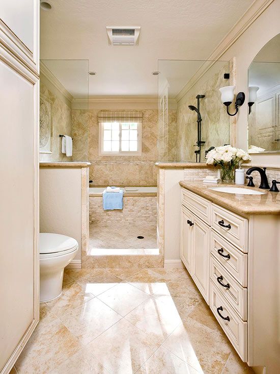Key Tip: Light, neutral colors can make the bathroom appear larger and more inviting.